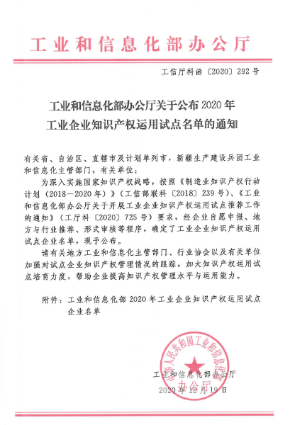 近日,工業(yè)和信息化部公布了2020年工業(yè)企業(yè)知識產(chǎn)權運用試點企業(yè)名單,康輝醫(yī)療科技(蘇州)有限公司名列其中。