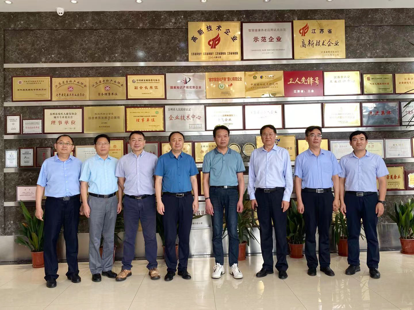 棗莊學(xué)院領(lǐng)導(dǎo)一行還在陳利忠董事長帶領(lǐng)下實地參觀了公司展示中心,詳細了解了智慧養(yǎng)老整體解決方案,親身感受了多款輔具產(chǎn)品的功能和特色。